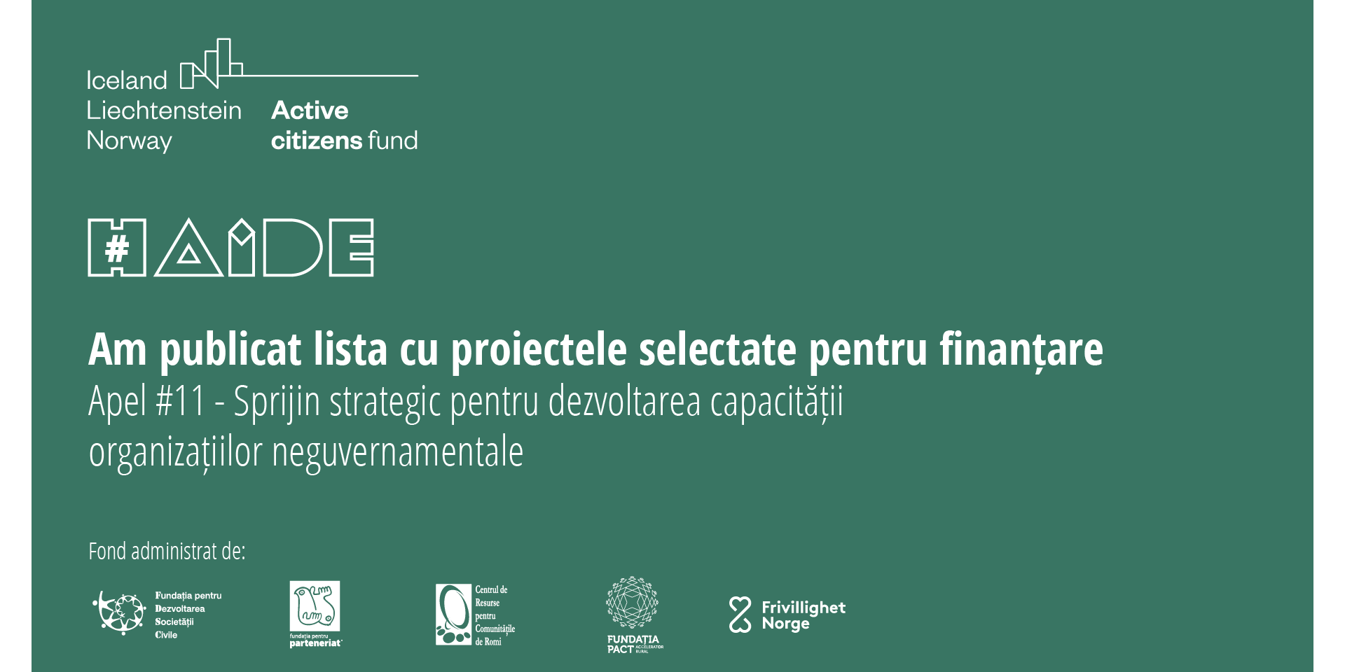 Apelul a fost lansat în cadrul Outcome-ului 4 de Program – Capacitate crescută și sustenabilitate a societății civile (organizații și sector) și acoperă două aspecte prioritare sprijinite de Active Citizens Fund în România, respectiv ”Consolidarea capacității și sustenabilității sectorului societății civile” și ”O mai bună acoperire a zonelor geografice și a grupurilor țintă care sunt insuficient deservite”.