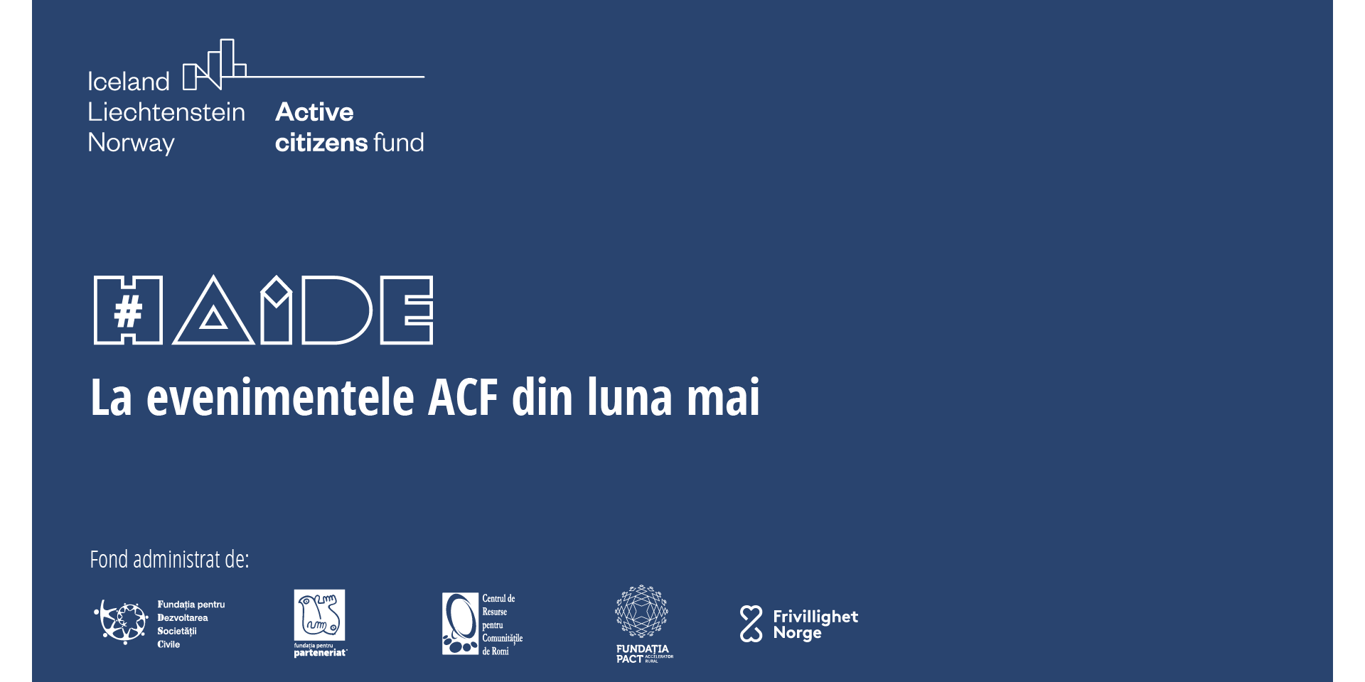 Detalii suplimentare despre fiecare eveniment sunt disponibile și pe pagina de Facebook Active Citizens Fund România: www.facebook.com/acfromania/events.