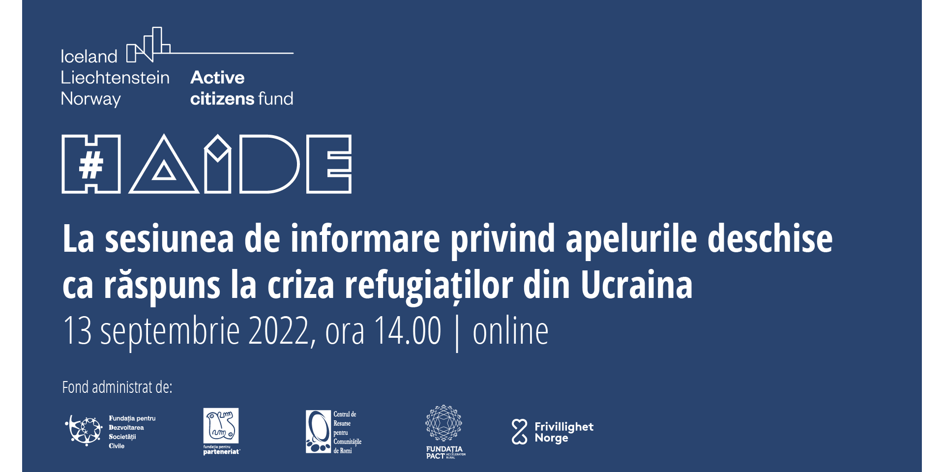 Fundația pentru Dezvoltarea Societății Civile organizează în cadrul programului de finanțare Active Citizens Fund România o sesiune de informare în care vor fi prezentate cele trei apeluri deschise ca răspuns la criza din Ucraina, tematici și eligibilitate.
